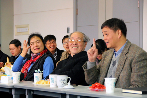 3月18日上午8:30,“中科院固体所30周年所庆” 二室室友座谈会在固体所大楼报告厅举行。从国内外高校和科研院所赶回来的二室室友和现有的二室全体成员欢聚一堂,在欢乐祥和的气氛中以“欢迎回家”为主题,忆往昔,畅未来。首先,二室的首任主任郑庆祺研究员对所有参加所庆的室友表示了热烈的欢迎,也对各位室友在祖国和世界各地的科研岗位上取得的科研成就表示了祝贺。郑庆祺老师回忆了固体所的筹建和成立历史,以及二室在建设发展初期艰苦的科研工作环境以及老一辈科研工作者的奋斗历程,讲述了物质计算科学发展的机遇和挑战,畅谈了物质计算科学的发展前景。二室前主任、现复旦大学物理系龚新高教授动情地回忆了来所学习工作期间的师生情谊,以及在二室发展初期的艰苦工作生活,表达了对老一辈导师的感激和敬意,对二室的发展前景表达了自己的祝福和期望。二室的第三任主任、曾雉副所长则回顾了二室发展壮大的历史和感触并介绍了目前的科研条件,指出二室三十年的传承延续、稳定发展是整个二室人共同努力的结果。三届主任对科学岛的感情,对固体所二室的感情,字里行间真的无法用语言来表达。谈到自己在科学岛的点点滴滴,遇到的困难和得到的关爱,情到深处,曾老师不禁热泪盈眶……现任主任邹良剑研究员也就近几年研究室的科研方向、研究成果和人才队伍做了简要介绍,期待二室在室友们的关心支持下能更好地发展壮大!