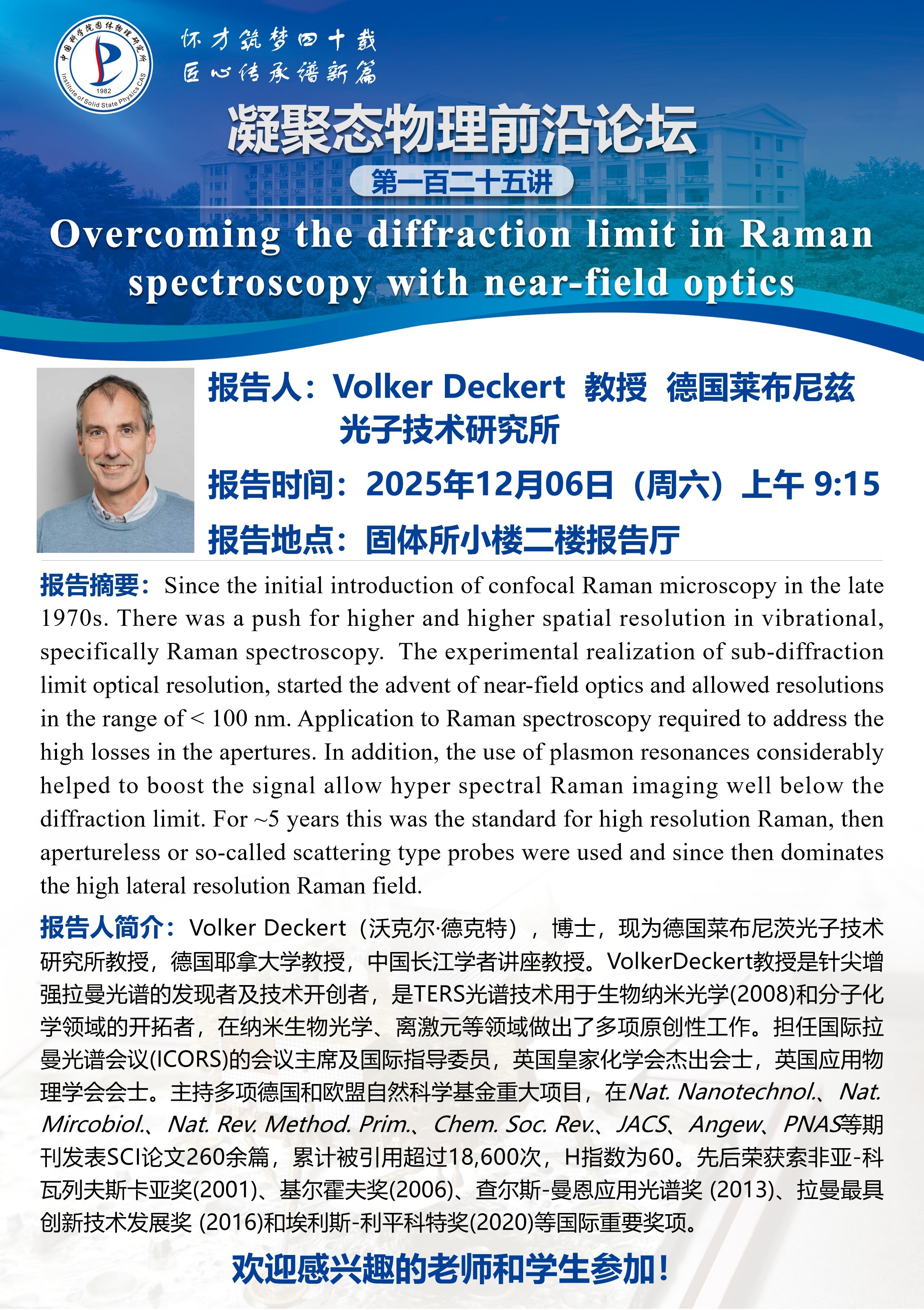 Overcoming the diffraction limit in Raman spectroscopy(125讲 Volker Deckert 教授 )