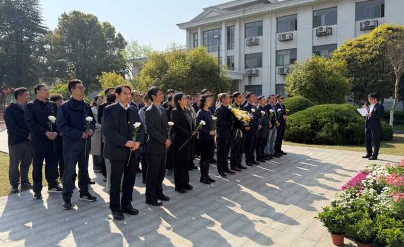 缅怀仪式在葛庭燧纪念广场庄严举行。固体所党委书记滕雪梅致辞,深情回顾葛庭燧先生为我国科学事业作出的卓越贡献,号召全体师生传承葛先生爱国奉献、求实创新的科学精神。全体人员依次向葛庭燧先生雕像敬献鲜花,集体三鞠躬,以最庄重诚挚的方式,表达对先生的深切缅怀与崇高敬意。