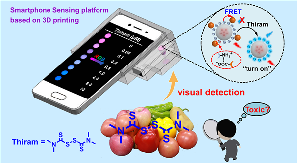 图2. 便携式智能手机传感平台可视化检测农残福美双示意图。