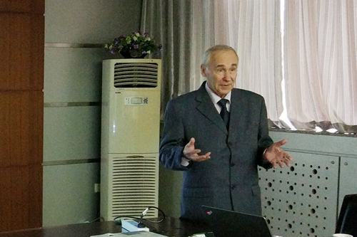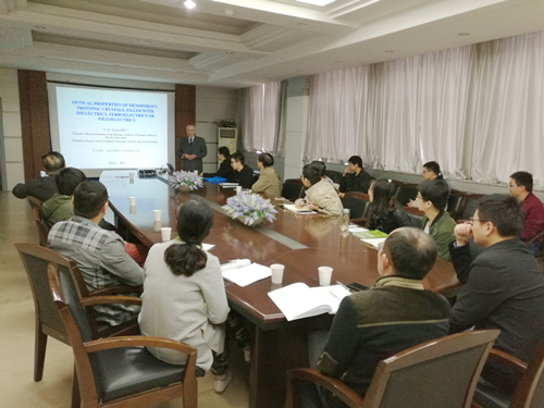 访问期间,戈列利克研究员作了题目为“填充有电介质、铁电和压电材料的介孔光子晶体的光学性质(Optical properties of mesoporous photonic crystals, filled with dielectrics, ferroelectrics or pizeoelectrics)”的精彩报告。会后戈列利克研究员与固体所资深研究员张立德进行了会面和交流,并参观了部分实验室。固体所一些科研人员分别向戈列利克研究员介绍了近期取得的科研成果,其中一些研究工作引起了戈列利克研究员浓厚的兴趣,并讨论了今后的合作研究事宜。