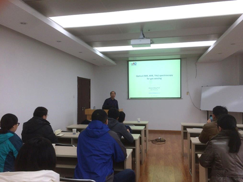 11月29日,应固体所青年联合会的邀请,美国Arrow Grand Technologies 公司研发研究员王振友博士做客固体所青年论坛,并做了题为“Optical (NIR, MIR, THz) spectroscopy for gas sensing”的学术报告。