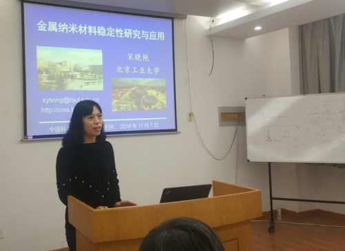 11月7日,北京工业大学宋晓艳教授应邀做客固体所凝聚态物理前沿论坛,并做了题为“金属纳米材料稳定性研究及应用”的学术报告。报告会由固体所张涛研究员主持。