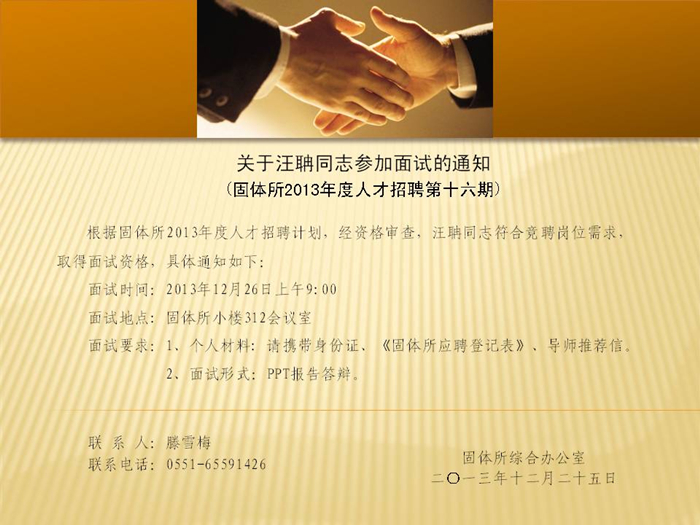 【面试通知】2013年第十六期:关于汪聃同志参加面试的通知