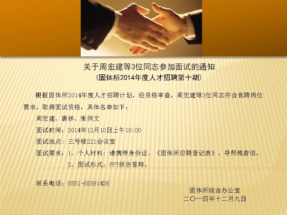 【面试通知】2014年第十期:关于周宏建等3名同志参加面试的通知