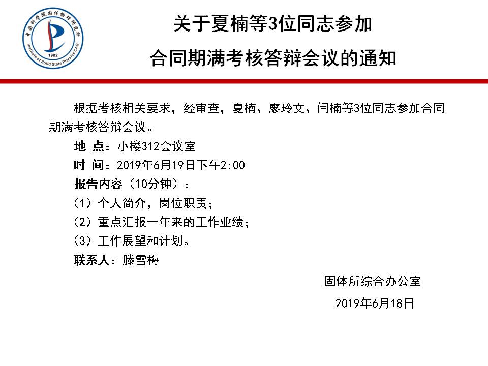 【合同期答辩】关于夏楠等3位同志参加合同期满考核答辩会议的通知
