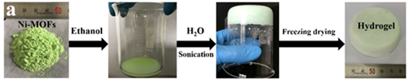 图1.Ni-MOFs前驱体自组装气凝胶的制备流程。
