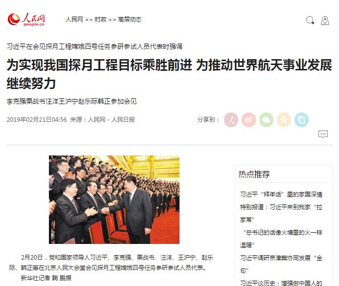 【人民网】为实现我国探月工程目标乘胜前进 为推动世界航天事业发展继续努力