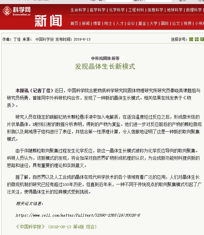 【中国科学报】发现晶体生长新模式