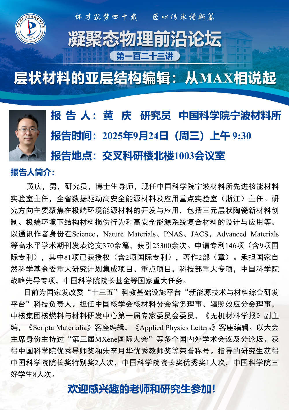 【2025.09.24】层状材料的亚层结构编辑:从MAX相说起(123讲 黄庆 研究员 中国科学院宁波材料所)