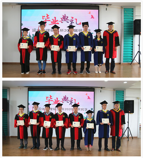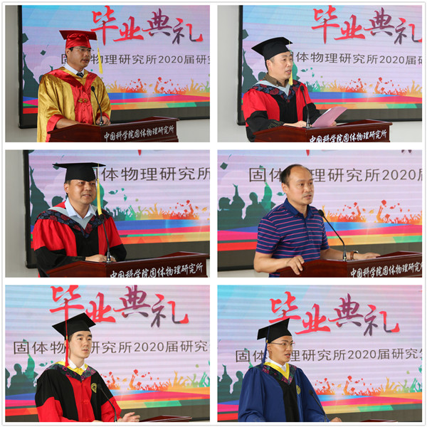 伴随着国歌声响起,毕业典礼正式开始。开场视频饱含了各位老师以及同学们对毕业生的深深祝福。随后,梁长浩所长深情致辞,他表示2020年是注定极不平凡的一年,疫情面前,我们再一次感受到祖国的强大和伟大,在以习近平同志为核心的党中央的坚强领导下,中国取得了抗疫的阶段性胜利,因此应该更加懂得尊重与包容,更加敬畏生命与自然,遵守规则与秩序。他将固体所文化理念“唯实,坚持自律”、“拓新,绽放青春”、“求真,心存敬畏”、“协力,功成不必在我”送给毕业生,希望同学们可以牢记使命,成就属于自己的精彩人生!